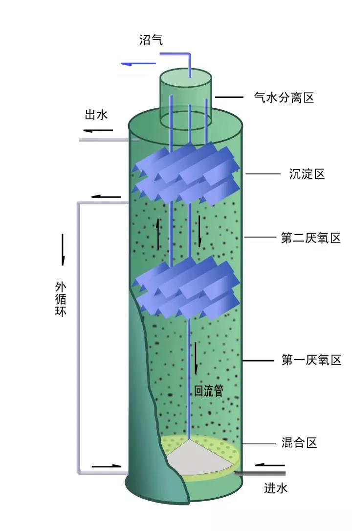 厭氧發(fā)酵池采用UASB、AAFEB或上流式厭氧膨脹床反應器,當保持中溫厭氧條件時,廢水停留時間8-12小時,COD去除率可達60%-75%。而在常溫條件下,其去除率會降低,此時應適當增加廢水停留時間。當洗毛廢水量較大時,產生的沼氣可以收集利用,否則將采取高空排放。