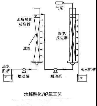 傳統(tǒng)的好氧和厭氧生物處理法已不能滿足印染行業(yè)的需求,進而產生了厭氧-好氧組合生物處理技術,充分利用了厭氧和好氧生物處理技術的優(yōu)點,厭氧-好氧系統(tǒng)中的厭氧段具有雙重的作用:一是對廢水進行預處理,改善其可生化性能,吸附、降解一部分有機物;二是對系統(tǒng)的剩余污泥進行消化。例如如下三種工藝:厭氧-好氧-生物炭接觸工藝、厭氧-好氧生物轉盤工藝和水解酸化-好氧工藝。