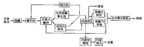 厭氧-好氧-生物炭接觸:對于CODCr為800~1000mg/L的印染廢水,使用該處理工藝,處理效果完全可以達到國家排放標準,再稍加進一步處理還可回用,系統(tǒng)的污泥趨于自身平衡。目前已有多家生產廠采用該流程,運轉時間最長的達5年以上,處理效果穩(wěn)定,而且從未外排污泥,也沒發(fā)現厭氧池內污泥過度增長。