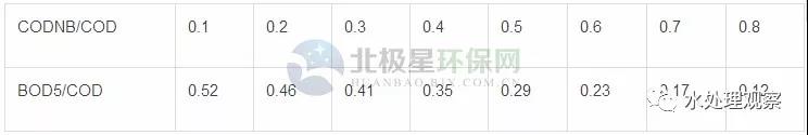 BOD5/COD與CODNB/COD之間有如下表所示的關(guān)系: