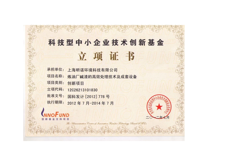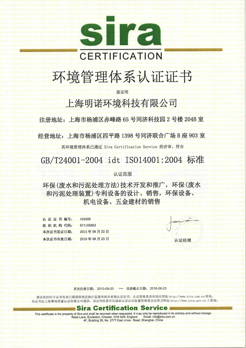 明諾環(huán)境被認(rèn)定為“國家級高新技術(shù)企業(yè)”,并受到國家科技部創(chuàng)新基金支持。公司已經(jīng)通過ISO9001:2008質(zhì)量管理體系認(rèn)證和ISO14001:2004環(huán)境管理體系認(rèn)證。